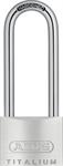 TITALIUM hængelås med 30 % lavere vægt og samme sikkerhedsniveau som messing. Model i rustfrit stål-look med 63 mm høj bøjle i hærdet specialstål.