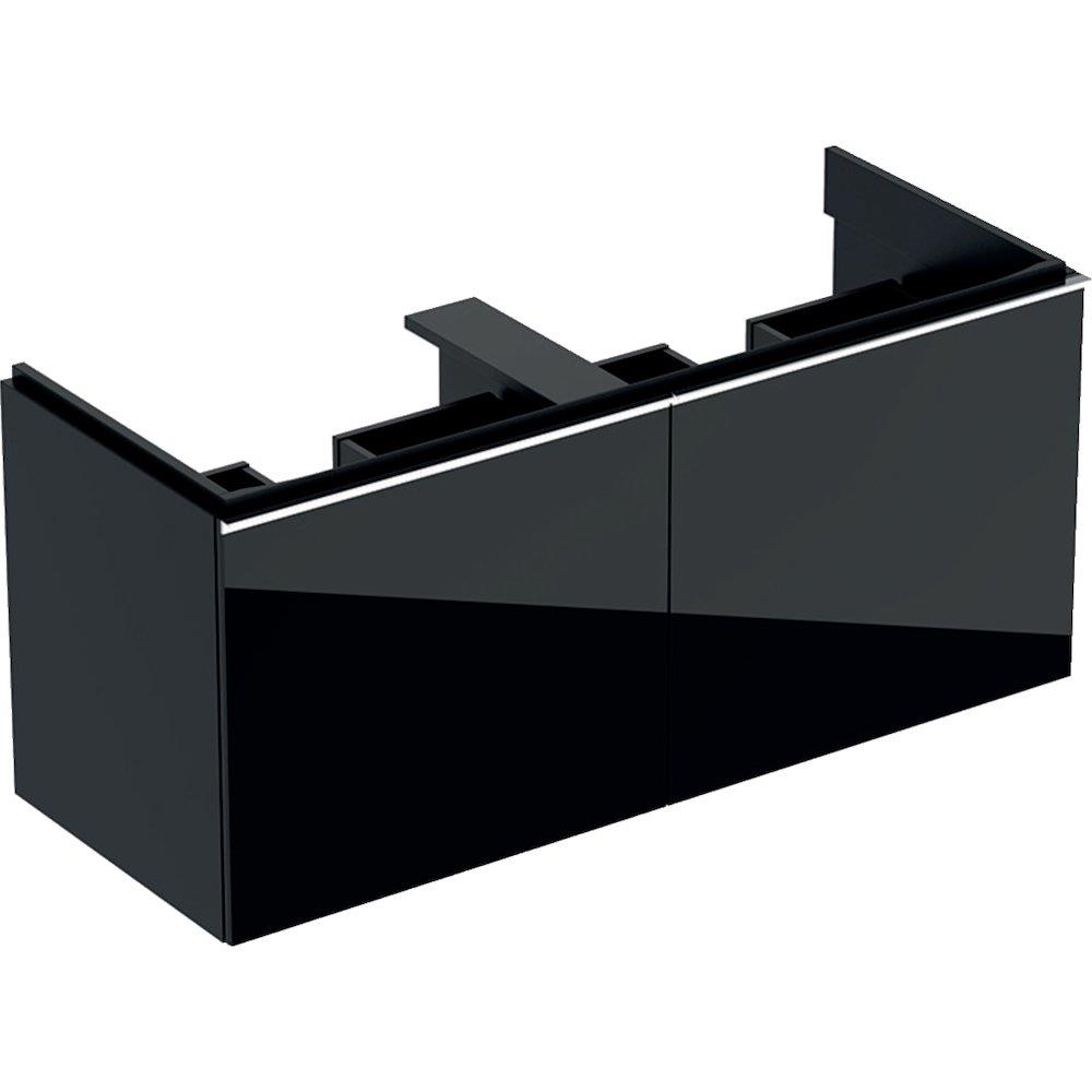 Geberit Acanto underskab til dobbeltvask med to skuffer og softclose. Mål: B=119cm, H=53.5cm, D=47.6cm. Farve: lakeret mat/sort, glas blank/sort.