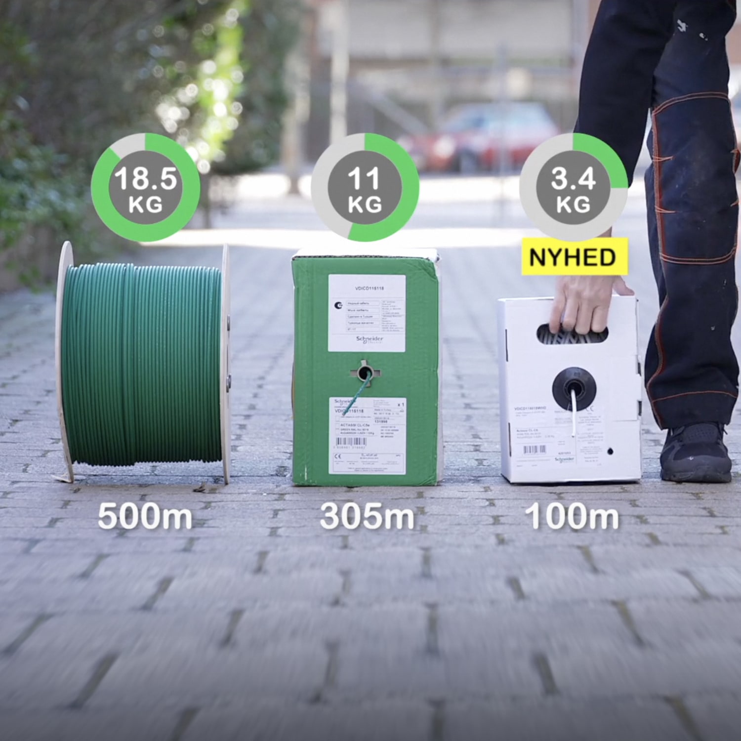 Kablet leveres på en praktisk 100 meter box, som gør det nemt at transportere og opbevare.