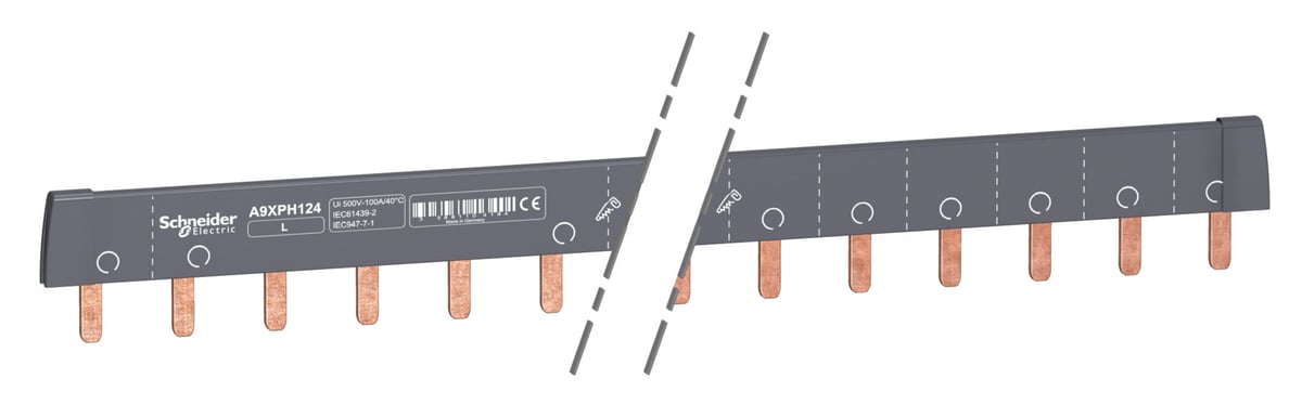 Gør installationen af Schneider Electric-produkter nemmere med denne 1-polede sløjfeskinne. Den kan tilskæres, er forsynet med IP20 endestykker og har tydelig fasemarkering.