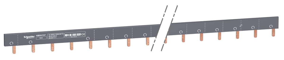 Sløjfeskinne til hurtig og nem montering af Schneider Electric Acti 9 produkter på DIN-skinne. Med skæremarkeringer og selvslukkende isolering.
