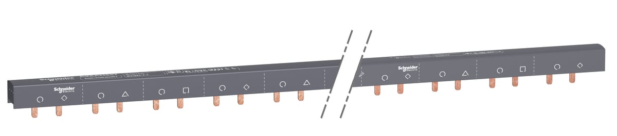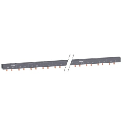 Denne sløjfeskinne fra Schneider Electric er designet til at gøre monteringen af Acti9-produkter på DIN-skinne hurtigere og mere enkel. Den er velegnet til anvendelse med 9+NL1/9+NL2/9+NL3 konfigurationer og understøtter en strømstyrke på 100A over 57 moduler.