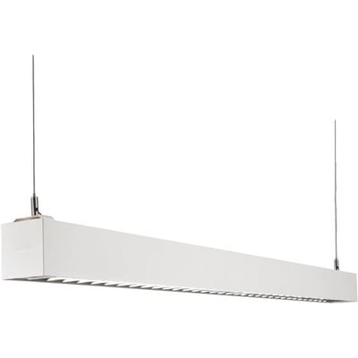 Nedpendlet interiørarmatur med 48W, 5950lm og 4000K. Ideel til kontor, mødelokaler og tavler. Hvidlakeret aluminium med dobbeltparabolsk afskærmning.