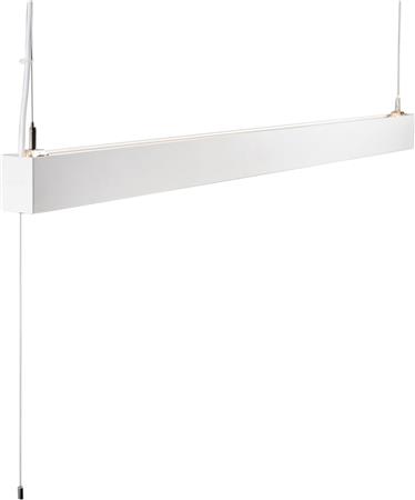 Dæmpbart pendelarmatur med 4550lm og 3000K, ideel til kontorer. Hvidlakeret aluminiumsramme med mikroprismatisk afskærmning.