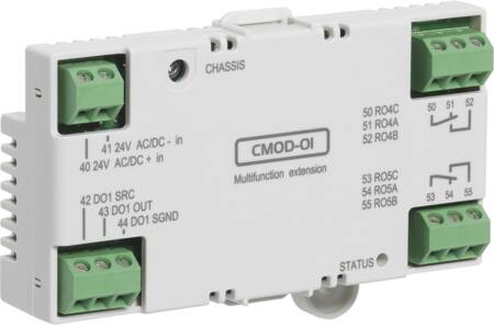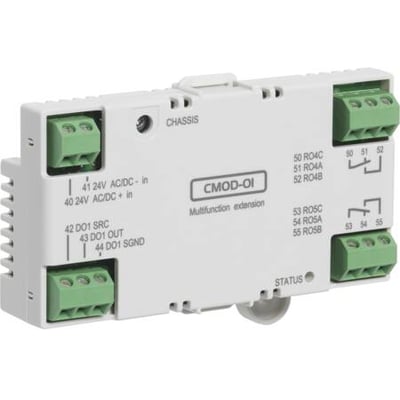 Denne I/O-udvidelsesmodul, CMOD-01, er designet til at supplere din ABB ACS580 frekvensomformer. Modulet giver mulighed for tilslutning af ekstern 24V forsyning og udvider funktionaliteten med ekstra udgange.