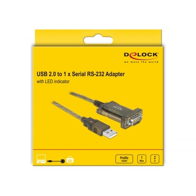 Denne USB Type-A til seriel adapter fra Delock giver en RS-232 port til målere, POS systemer, printere, modemmer, IoT enheder m.m.