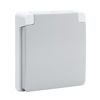 Stænktæt Niko Hydro adaptorramme til indbygning af 45x45 mm afbrydermateriel. Ideel til datamoduler, telefonstik og mere. IP55 kapslingsklasse.