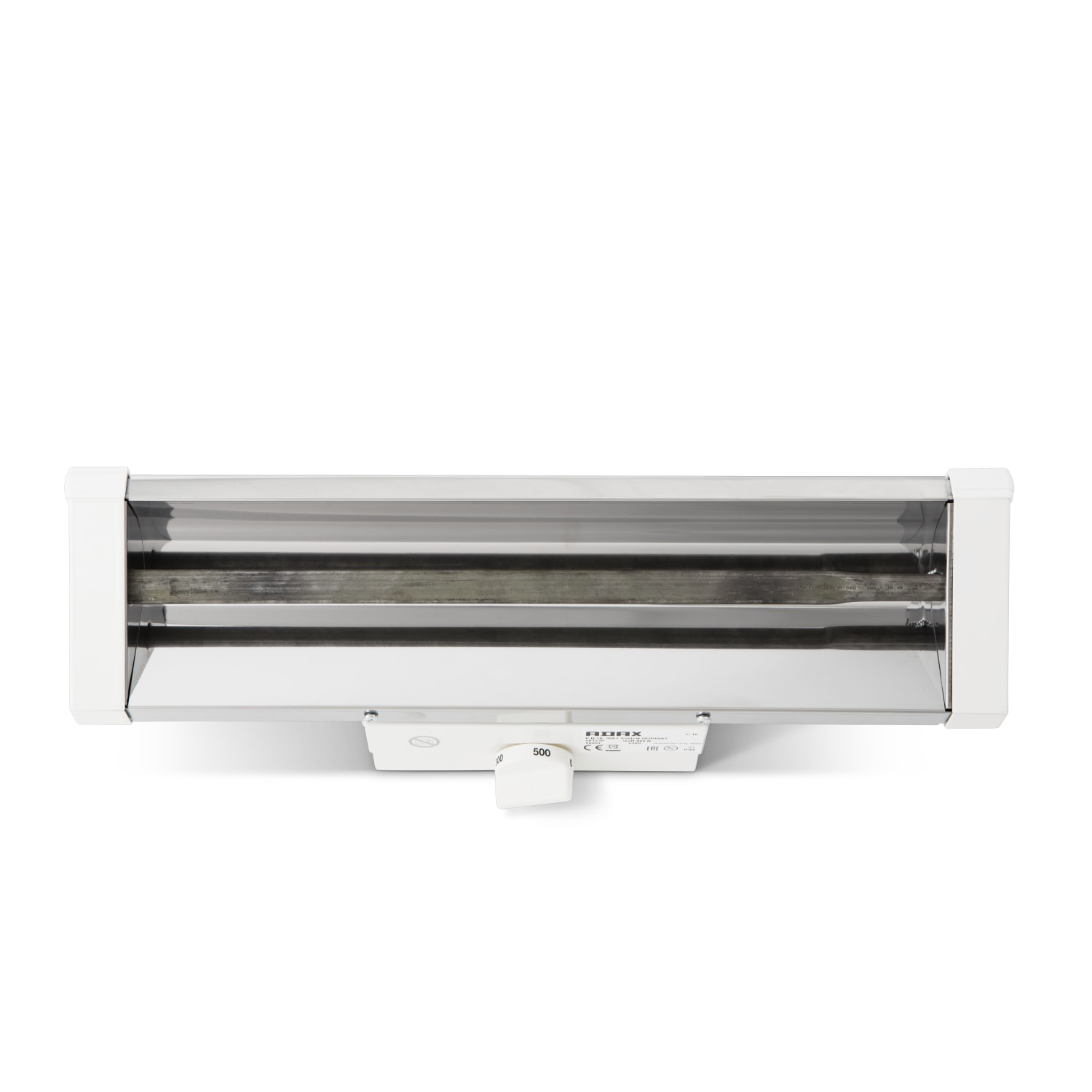 Adax strålevarmer med 750W effekt og infrarød varme. Perfekt til hurtig opvarmning af mindre rum, badeværelser eller terrasser (IP44).