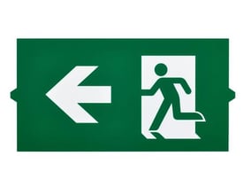 ADLER Exit Sign i sort med 25 meters rækkevidde og 3 timers nødstrøm. Inkluderer roterbar piktogram.
