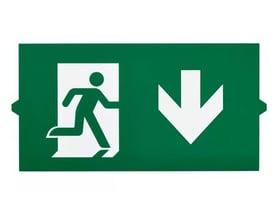 Skiltet leveres i en diskret sort finish, der passer ind i de fleste miljøer. Den medfølgende roterbare piktogram-funktion giver fleksibilitet i installationen, så skiltet kan placeres optimalt i forhold til flugtvejen.