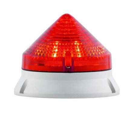 Blinklampe med xenonpære i rød, designet til industriel brug på maskiner. IP 54, temperaturområde -10°C til +40°C. Inkl. lyskilde og kan indstilles til fast lys eller 65 blink/min.