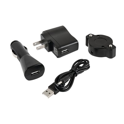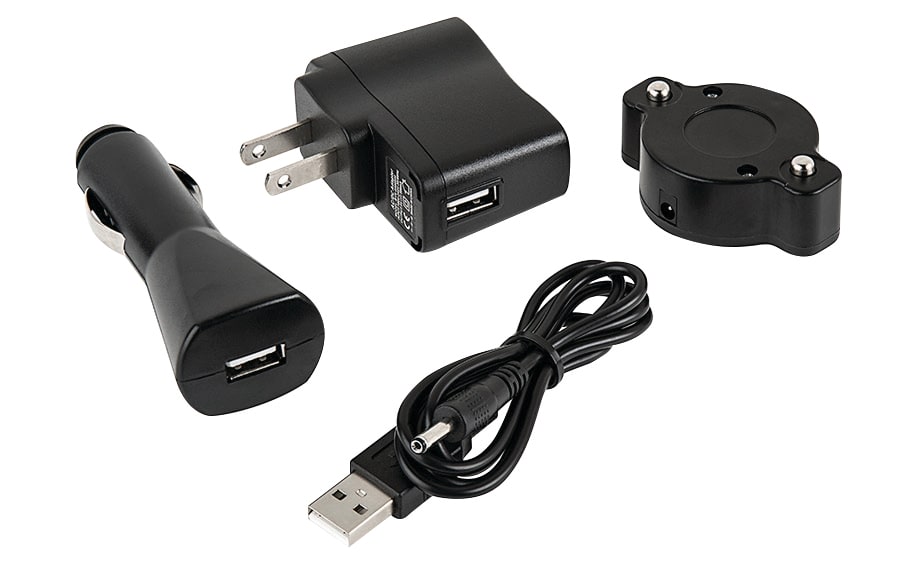 Ladekit til Japcell advarselslys. Indeholder magnetisk opladningsstation, USB til 3,5mm stik, 12V biloplader til han-USB og USB-vægoplader.