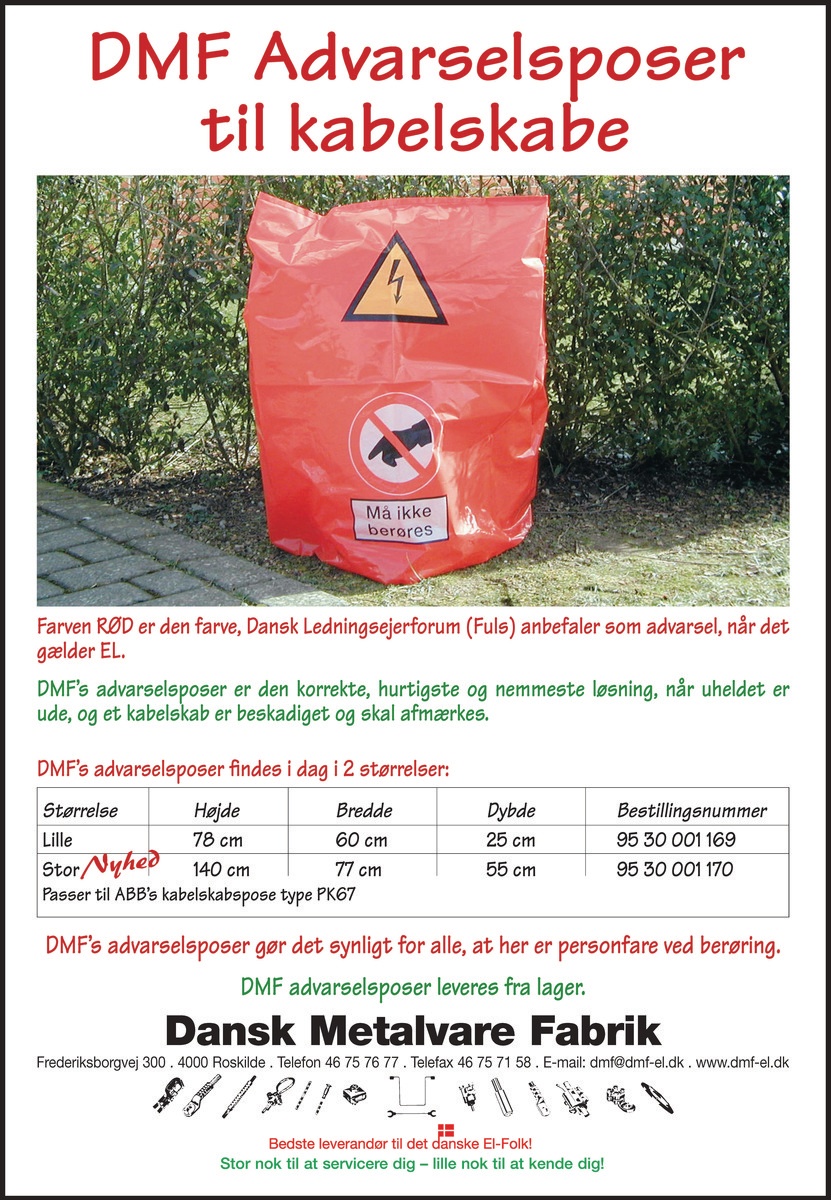 Advarselsposer fra Dansk Metalvare Fabrik (DMF) er den hurtige løsning til at afmærke et beskadiget kabelskab. Pakke med 25 stk. i dimensionerne 140x77x55 cm.