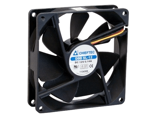 Chieftec AF-0925S kabinet blæser, 90x90x25mm, 3 pin/Molex, sort. Lavt støjniveau på 24 dBA og en lufthastighed på 33 CFM.