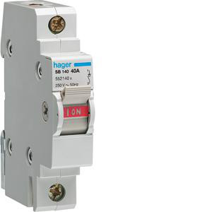 Hager 1P afbryder til sikker afbrydelse af strømkredse. Med grøn/rød markering for tydelig stillingsindikering. 25A, 230V/400V.