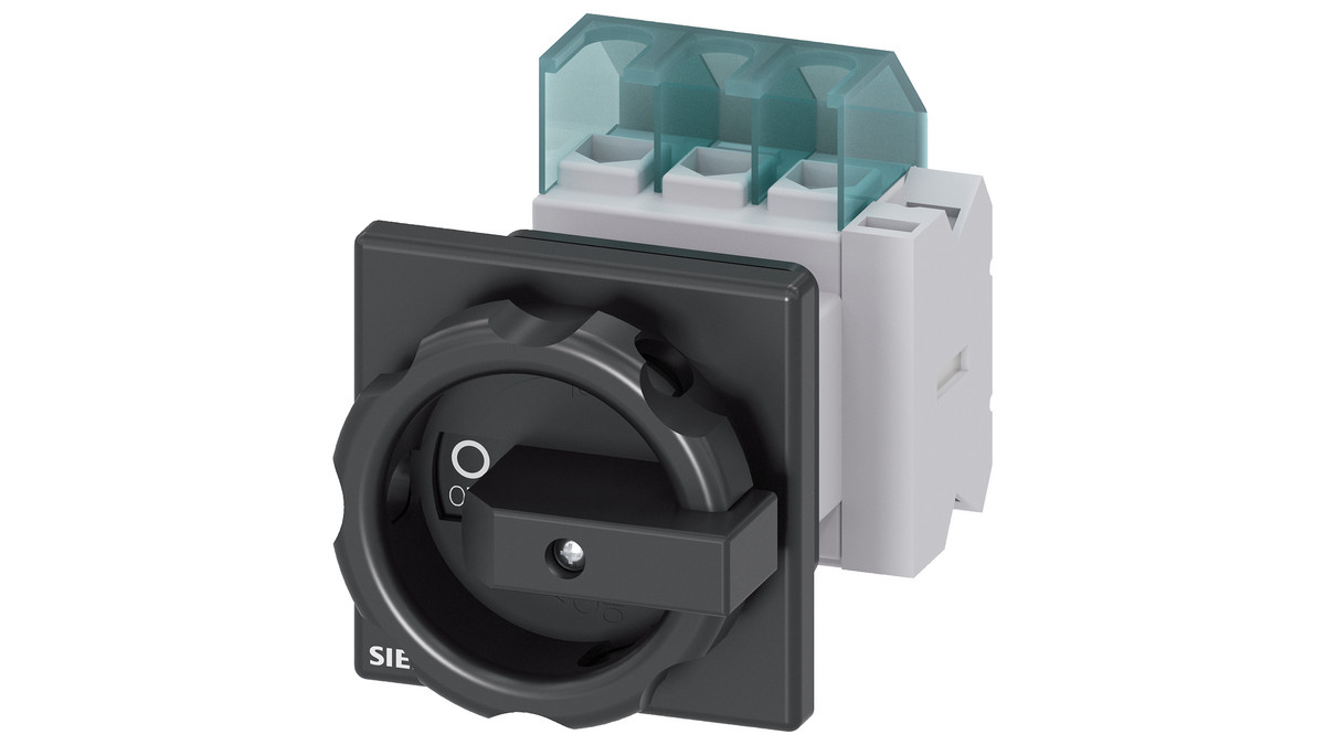 4-polet hovedafbryder fra Siemens med IU=25. P/AC-23A ved 400V=9,5 kW. Med 1 S + 1 B, frontmontage, centerhulsmontage og sort aktiveringselement.