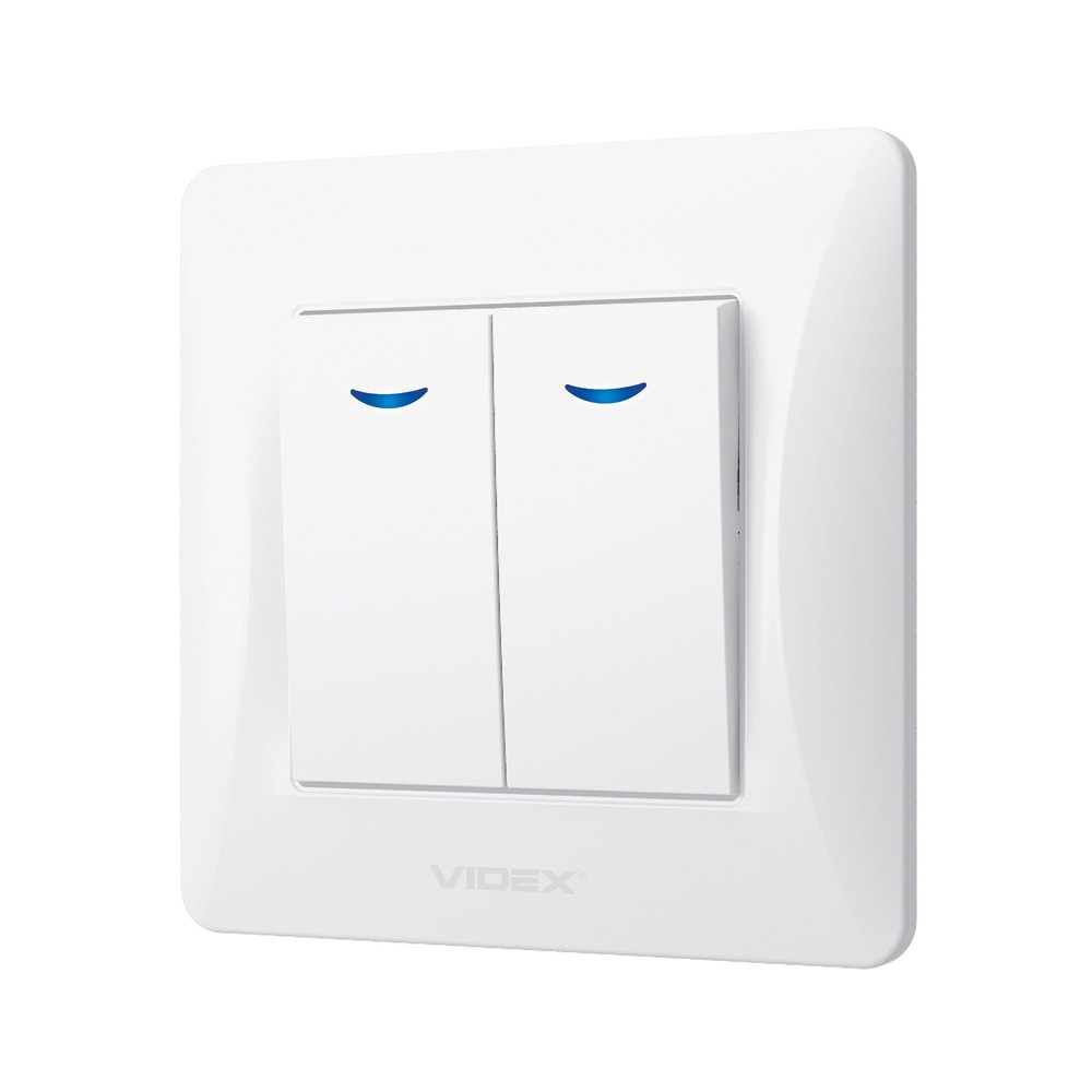 2-polet kontrolbryder i hvid PC plastik med LED-bagbelysning. IP20 klassificeret.