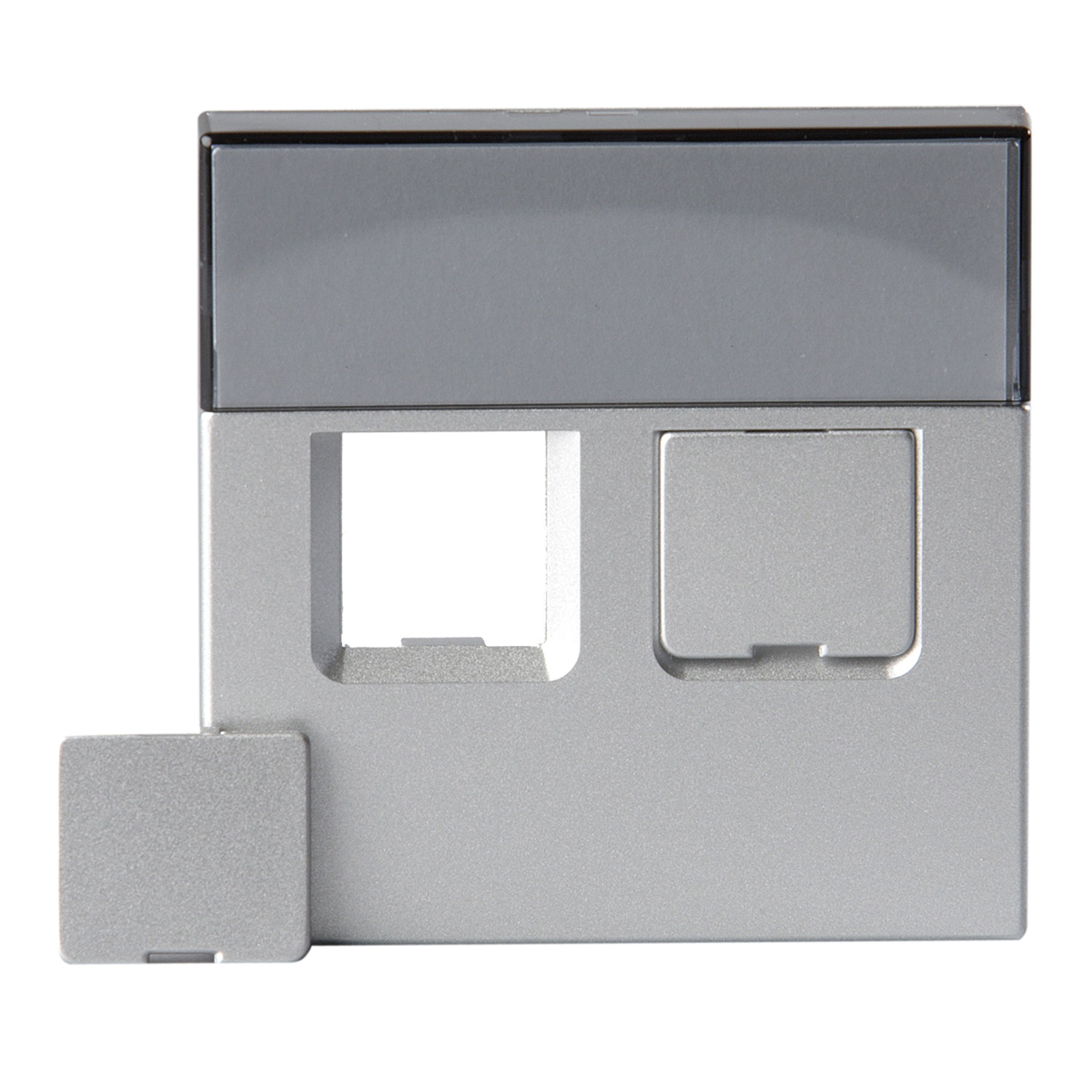 Afdækning for RJ-45 dataudtag 1819.xx med 2 blinddæksler og navneskilt (9x60mm). Passer til 85 mm 1 modul rammer.