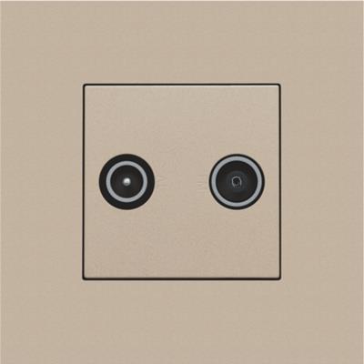 Denne afdækning er designet til TV/FM antenneudtag og er tydeligt mærket med både TV- og FM-symboler for nem identifikation. Den leveres i en champagne-farvet finish.