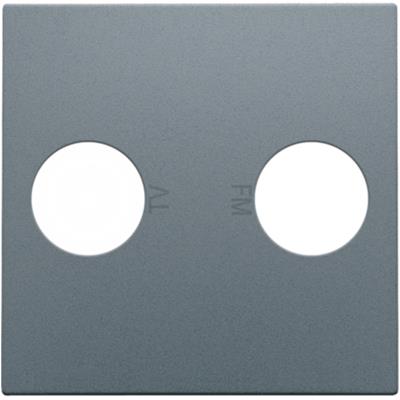 Afdækning til TV/FM antenneudtag i steel grey. Mærket med TV og FM-symbol. Indsats bestilles separat.