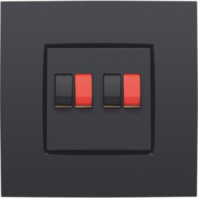 Elegant antracit afdækning til dobbelt højtalerudtag fra Niko. Tilgængelig i flere farver. Indsats (170-79701) bestilles separat.