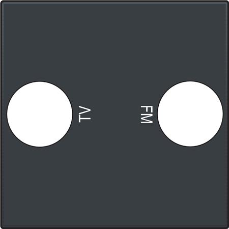 Afdækning til indsats for antenneudtag TV/FM, 1-modul. Mærket med TV og FM-symbol. Indsats bestilles separat. Fås i flere farver.