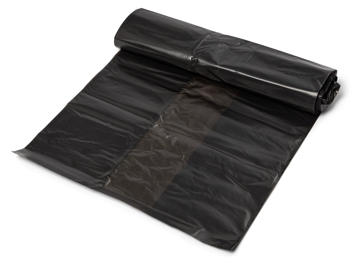 Ekstra lange affaldsposer i HDPE, 20 my tykkelse, sorte. Hver pakke indeholder 2 ruller med 15 poser.
