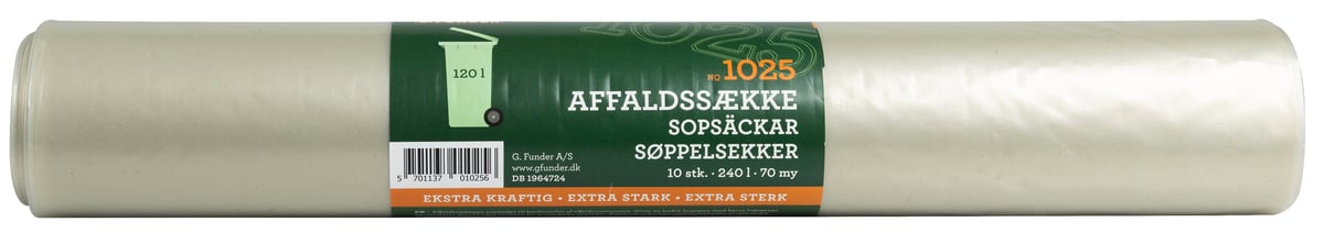 Disse container affaldssække er designet til at passe perfekt i en 120 liters affaldscontainer, som ofte anvendes til restaffald i hjemmet. Selvom de passer til en 120 liters container, rummer de reelt 240 liter, hvilket giver rigelig plads og mulighed for at slå sækken ud over containerens kant.