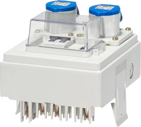 Afgangsboks 16A med 3 stk. 1P D01 sikringer og 1 stk. 5P CEE16A stik.