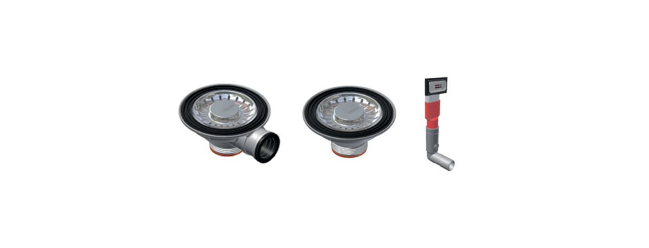Afløb 3½" T 1½ og 2 K design over fra Franke. Velegnet til skabsbredde 50 cm.