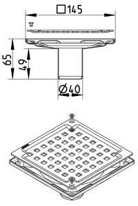 Gulvafløb Square lav fra Blücher i rustfrit stål. Ideelt til beton- og klinkegulve. Med lodret 40 mm udløb.