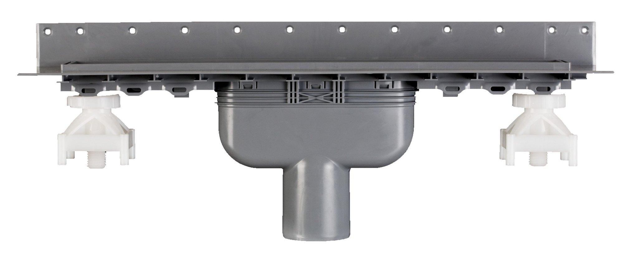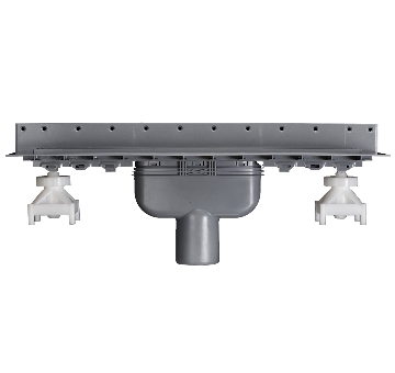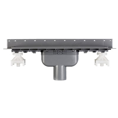 Dette gulvafløbssystem er udstyret med en fast, oval vandlås og et lodret udløb. Designet inkluderer en alsidig lodret/vandret flange, der giver fleksibilitet ved installation.