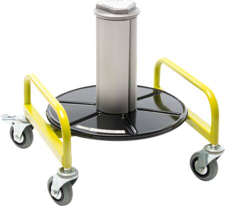 Afrulningsplade med justerbar kerne (150-260 mm) og en bæreevne på 50 kg. Inkl. låsbart hjulsæt.
