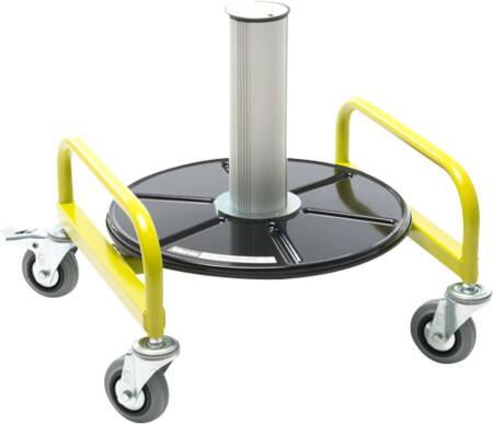 Afrulningsplade Ø450 mm, kerne Ø95 mm, kernehøjde 300 mm. Max bæreevne 50 kg. Inkl. låsbart hjulsæt.
