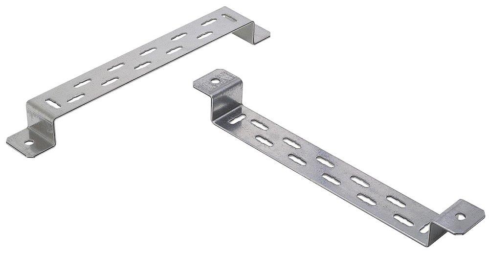 Afstandsbeslag til gitterbakke 300 mm. Højde 38 mm, dybde 50 mm, bredde 385 mm. Elforzinket stål.