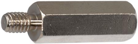Sekskantede afstandsstykker med indvendigt og udvendigt gevind. Fremstillet i stål og efterfølgende elforzinket i blå.