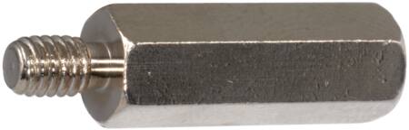 Sekskantede afstandsstag med indvendigt og udvendigt gevind. Stål, elforzinket blå.