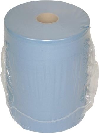 Effektivt 2-lags aftørringspapir i blå farve, ideelt til mange formål. Rullens diameter er 37 cm med en længde på 380 meter.