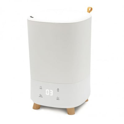 Air&me Solnan luftfugter i hvid er en effektiv løsning til at forbedre indeklimaet. Med en effekt på 30 W og en tankvolumen på 5,5 liter kan den fugte rum op til 40 m² effektivt.
