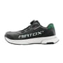Airtox FL44 sikkerhedssko i sort med grøn hælkappe og hvid mellemsål, med wirelukning og Whitelayer® teknologi.Venstre side af Airtox FL44 sikkerhedssko i sort microfiber med hvid sål og wirelukning, designet til komfort og beskyttelse.