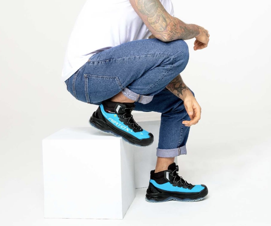 Airtox SR5 sikkerhedssko med bred, skandinavisk pasform, Air-System-mellemsål og Powerbreeze ventilation. ESD-godkendt og med S1-P sikkerhedsklasse.