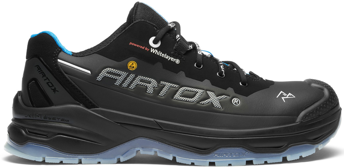 Airtox TX1 sikkerhedssko med Trans Am AIR sål, WHITELAYER sømværn, microfiber overdel, lav profil NEO stål tåkappe og bred skandinavisk pasform.