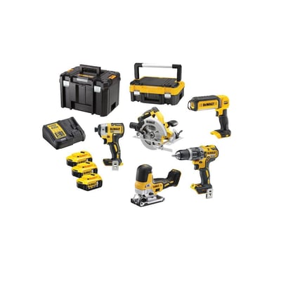 Dette alsidige akkusæt fra DEWALT indeholder et udvalg af 18V XR-maskiner, der dækker et bredt spektrum af opgaver. Sættet inkluderer følgende modeller: DCD796, DCF887, DCL050, DCS570 og DCS335.