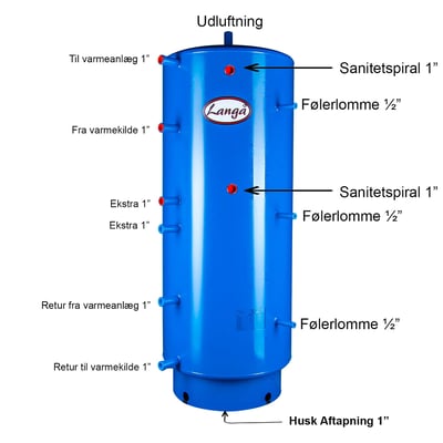 Akkumuleringstank med sanitetsspiral, rumindhold på 500 liter.