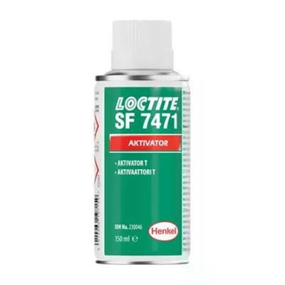 Loctite 7471 er en opløsningsmiddelbaseret aktivator, der fremskynder hærdningen af Loctite produkter, selv ved lave temperaturer. Den forbedrer klæbeevnen på tørre overflader og øger hærdningshastigheden på passive overflader som rustfrit stål, aluminium samt coatede og platerede materialer.