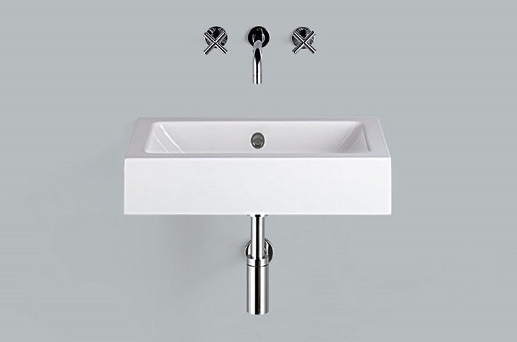 Alape WT.PR585 vægmonteret håndvask i glaseret stål med antibakteriel overflade, i hvid og firkantet design med overløb.
