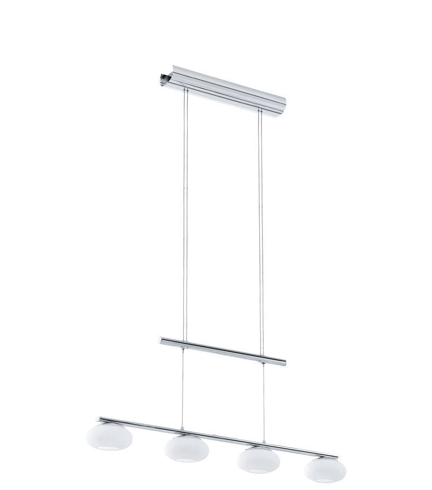 EGLO Aleandro 1 langbordspendel med hejs i krom. 4x4.5W LED, 2000LM, 3000K. Moderne design med opalhvide glas.