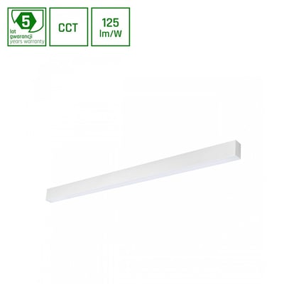 Effektivt Allday Basic LED panel på 40W med 4000lm. Justerbar farvetemperatur (CCT), IP20 og RA80. Mål: 1203x42x37mm. Hvid.