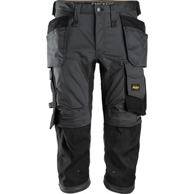 AllroundWork piratbukser i stretch med hylsterlommer fra Snickers Workwear. Slim fit design og Cordura® forstærkninger giver komfort og slidstyrke.