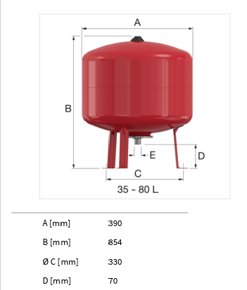 Trykekspansionsbeholderen opfylder de nødvendige krav for at sikre optimal drift og beskyttelse af dit varmesystem. Membranen er designet til at modstå temperaturer fra -10° C til 70° C, hvilket giver fleksibilitet i anvendelsen.